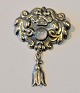 Dansk sølvsmed, 20. årh: Jugend brosche med rav. Stemplet. 7 x 5,5 cm. Brosche med