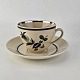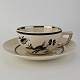 Kop med underkop med art nouveau hank i fajance fra stellet Dragsholm fremstillet i perioden 1934-1965.