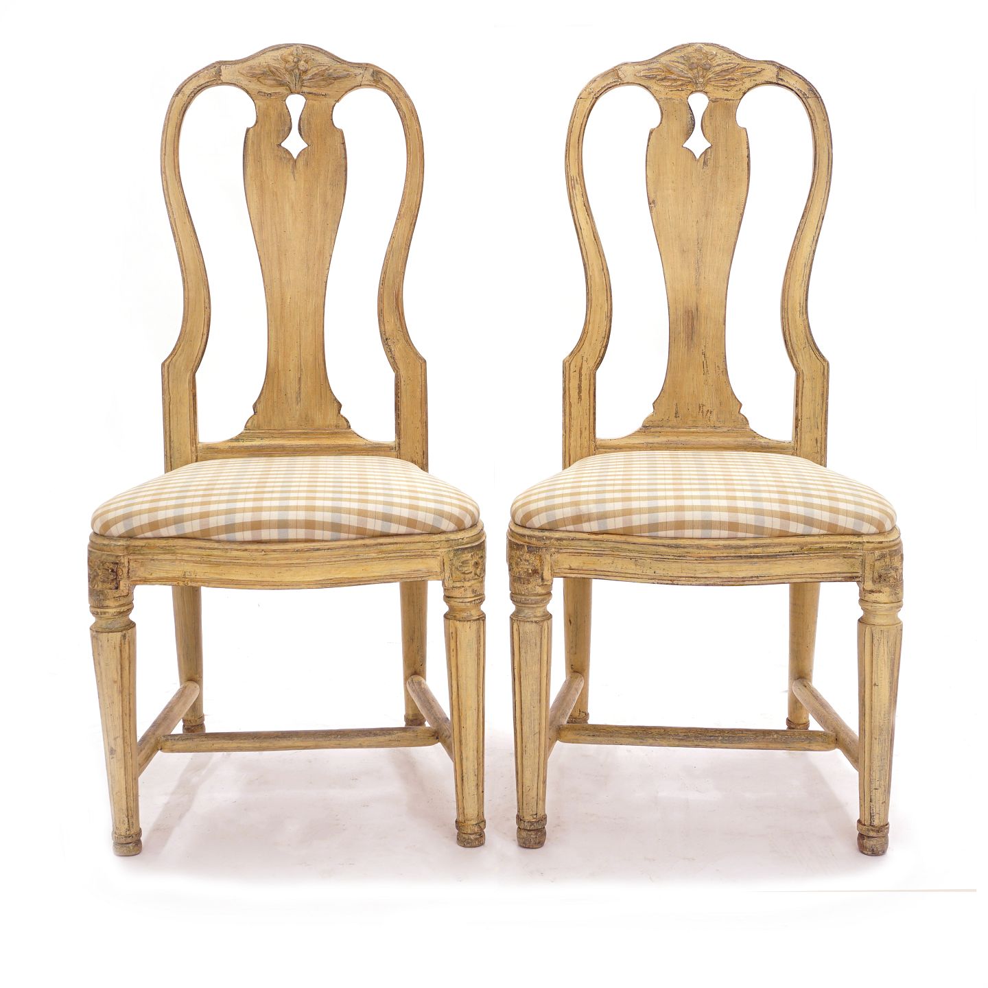 Ein Paar gustavianische Stühle. Schweden um 1780-1800. H: 99cm. H S: 44cm. B: 46cm. T: 43cm