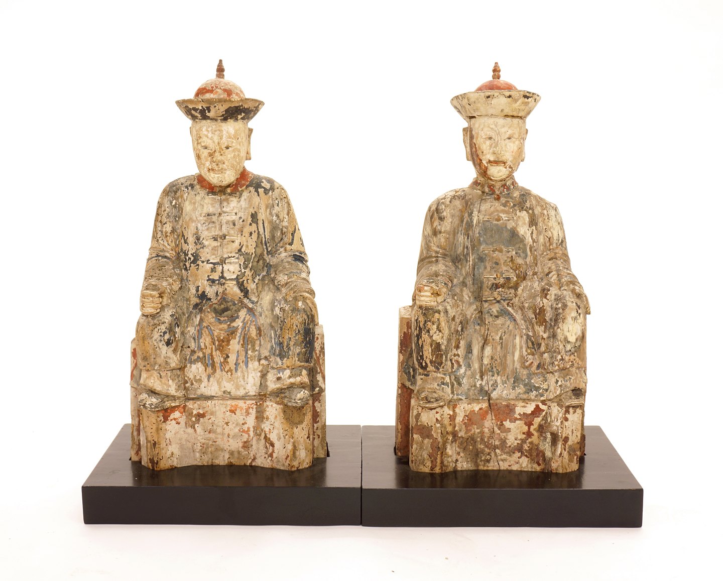A pair of sitting mandarins, wood