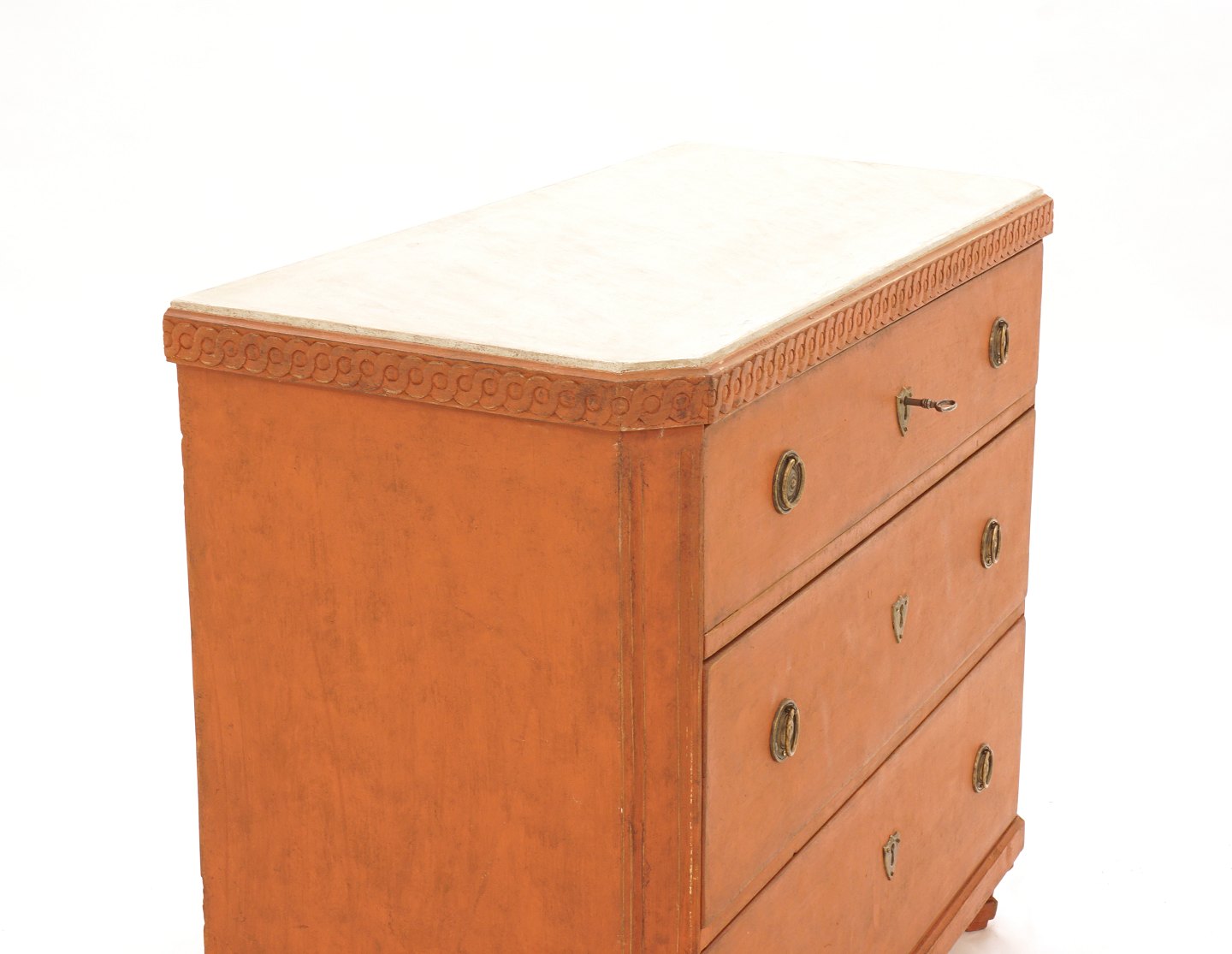 Red chest of drawers Gustavanian form Sweden around 1880 H: 83cm. Plate: 94x43cm Item number: 27289