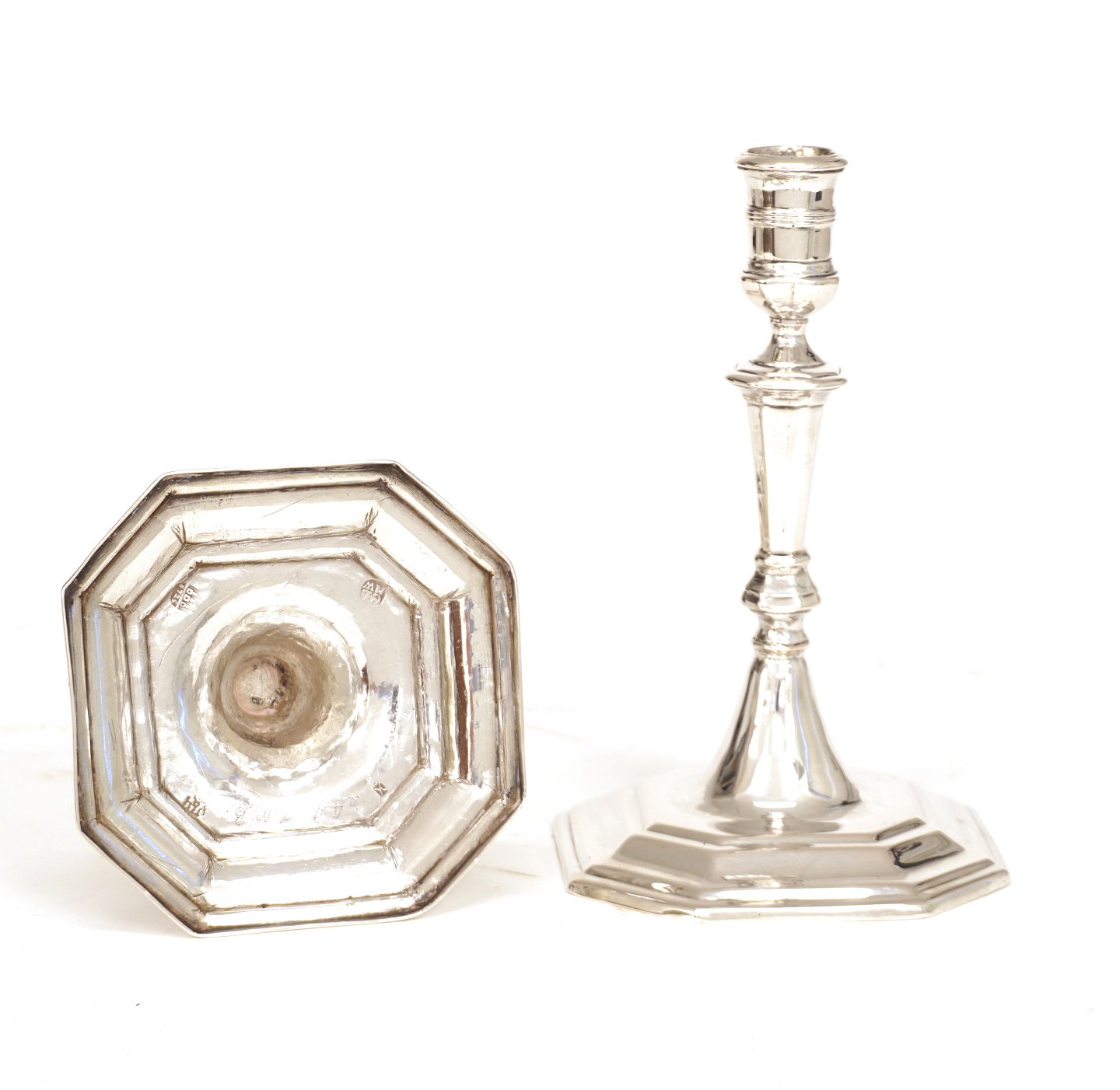 A pair of silver candle holders, baroque Master: M C Kirchhoff, Copenhagen 1725 H: 18,5cm. W: 564gr Item number: 26541