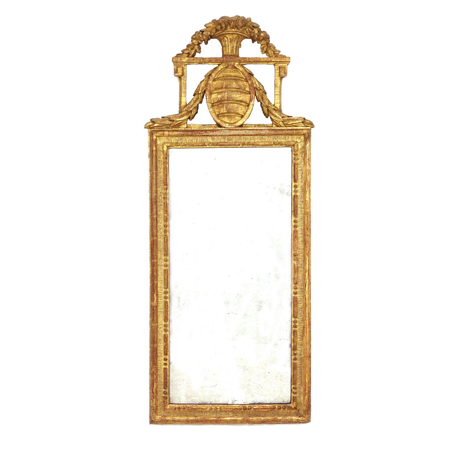 Forgyldt gustaviansk spejl. Sverige ca. år 1780. 100x41cm