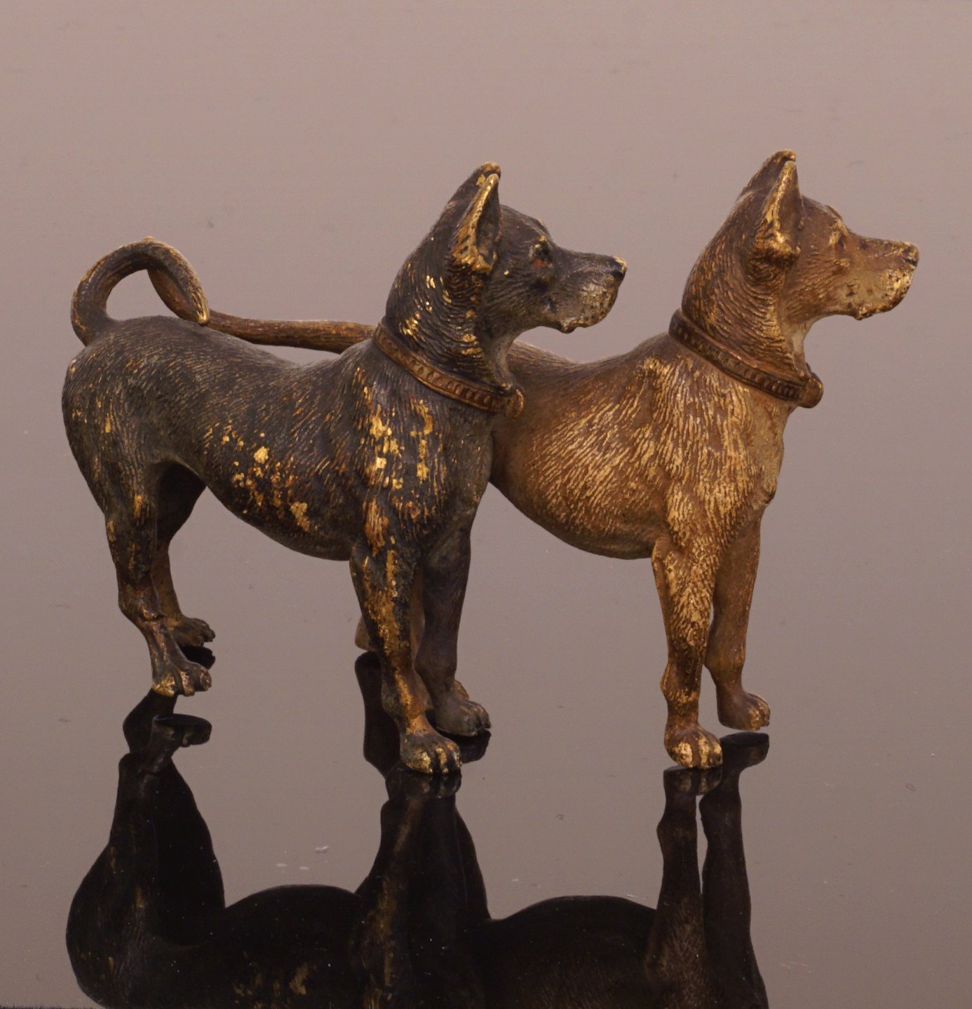 Wiener bronze figur i form af to hunde. Udført ca. år 1880. H: 8cm. L: 12cm