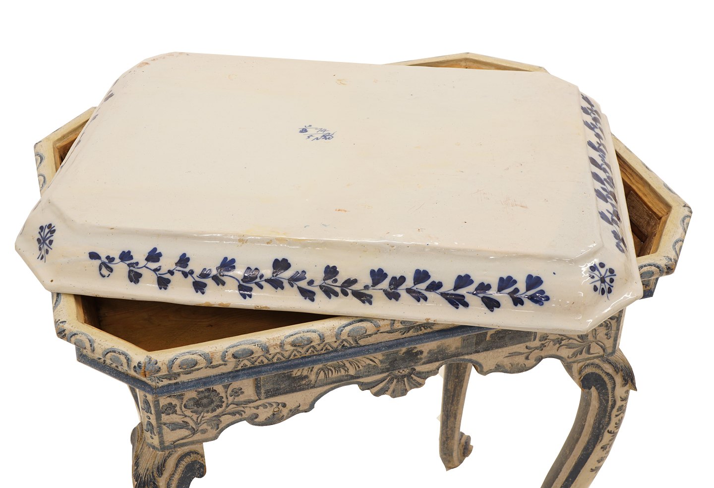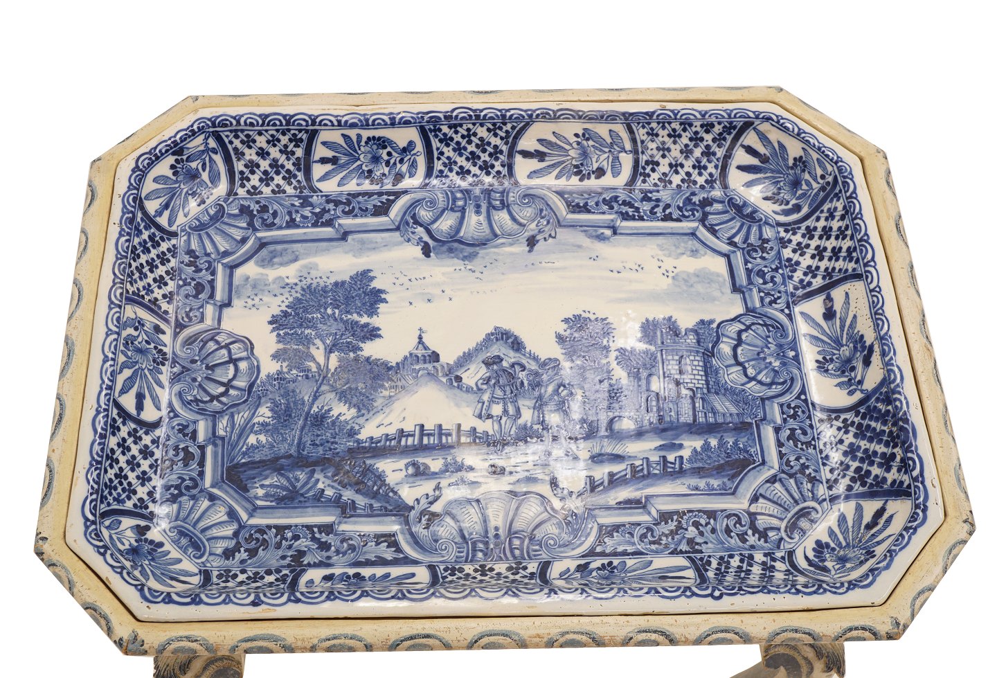 Store Kongensgade faience table-top tray Made circa 1740. Signed H: 75cm. Table: 73x55cm Item number: 27931