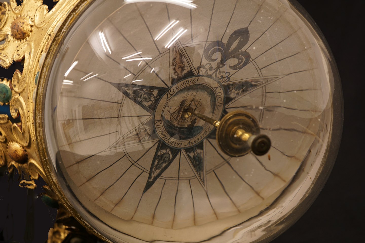 Sladrekompas. Signeret "Rasmus Koch Kiöbenhavn". H: 32cm