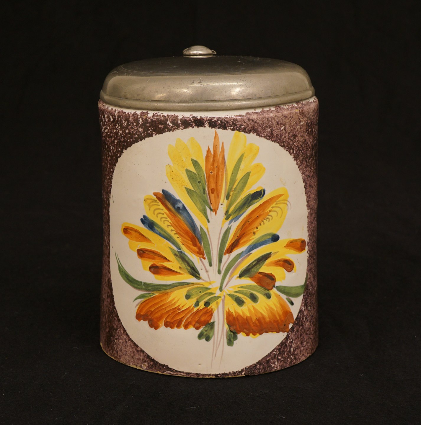 Kellinghusen lågkrus af fajance med motiv i form af stiliserede blomster