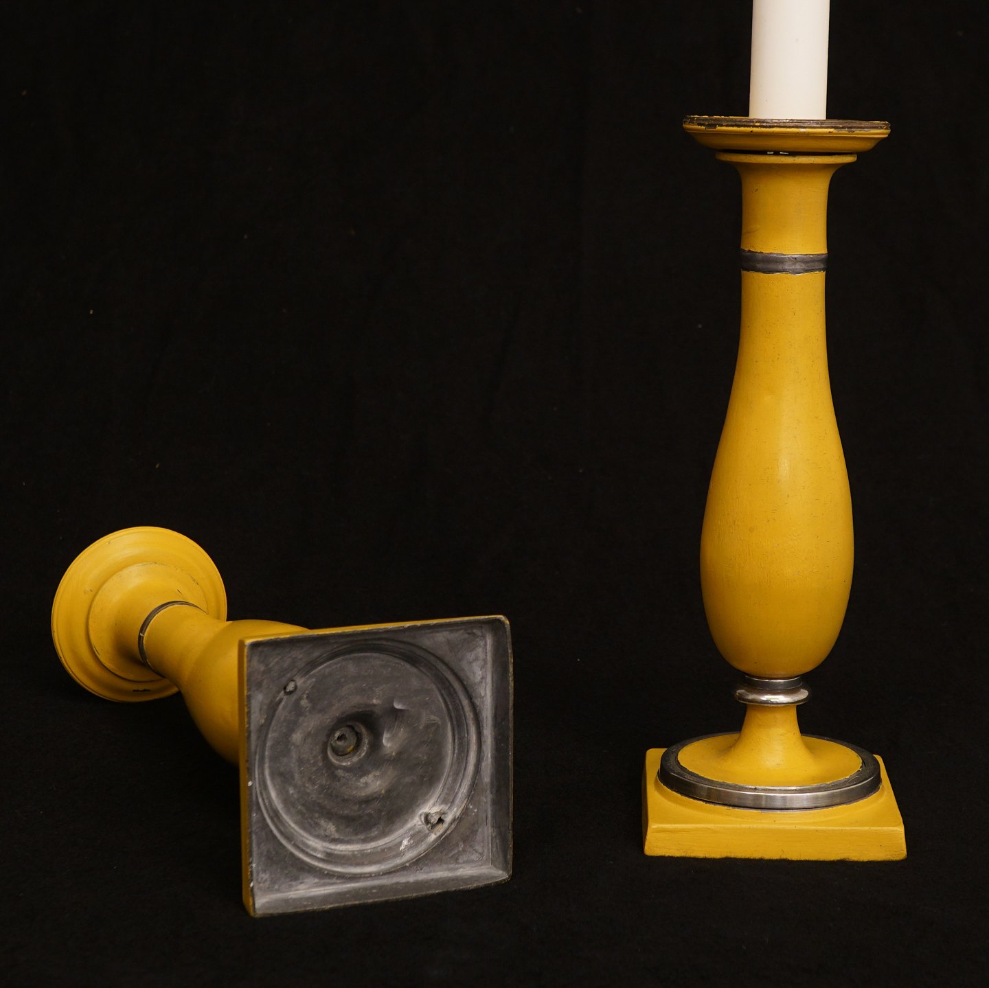 A pair of yellow painted candle sticks Denmark circa 1840 H: 21,6cm Item number: 24432
