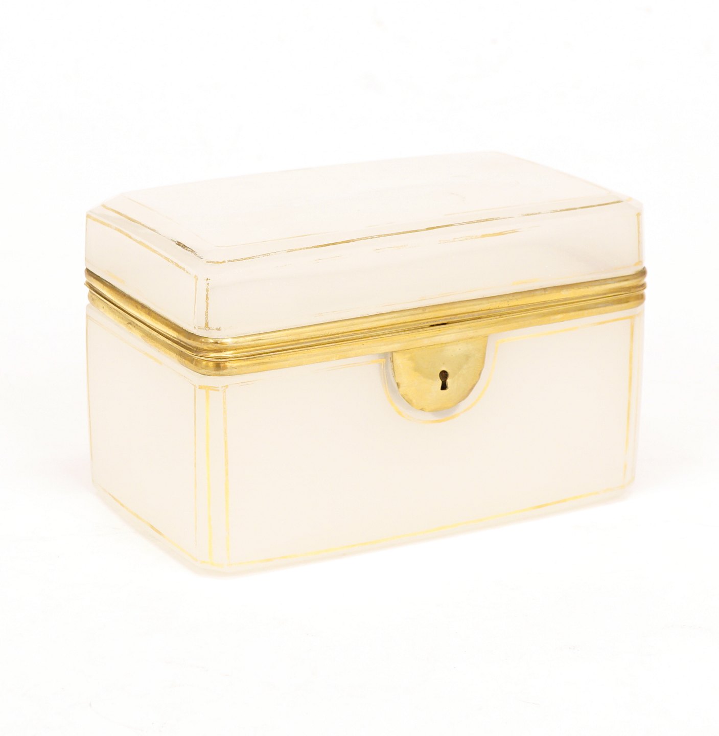 Sugarbox of white opal glass France circa 1840 H: 9,5cm. W: 14,5cm Item number: 28182B