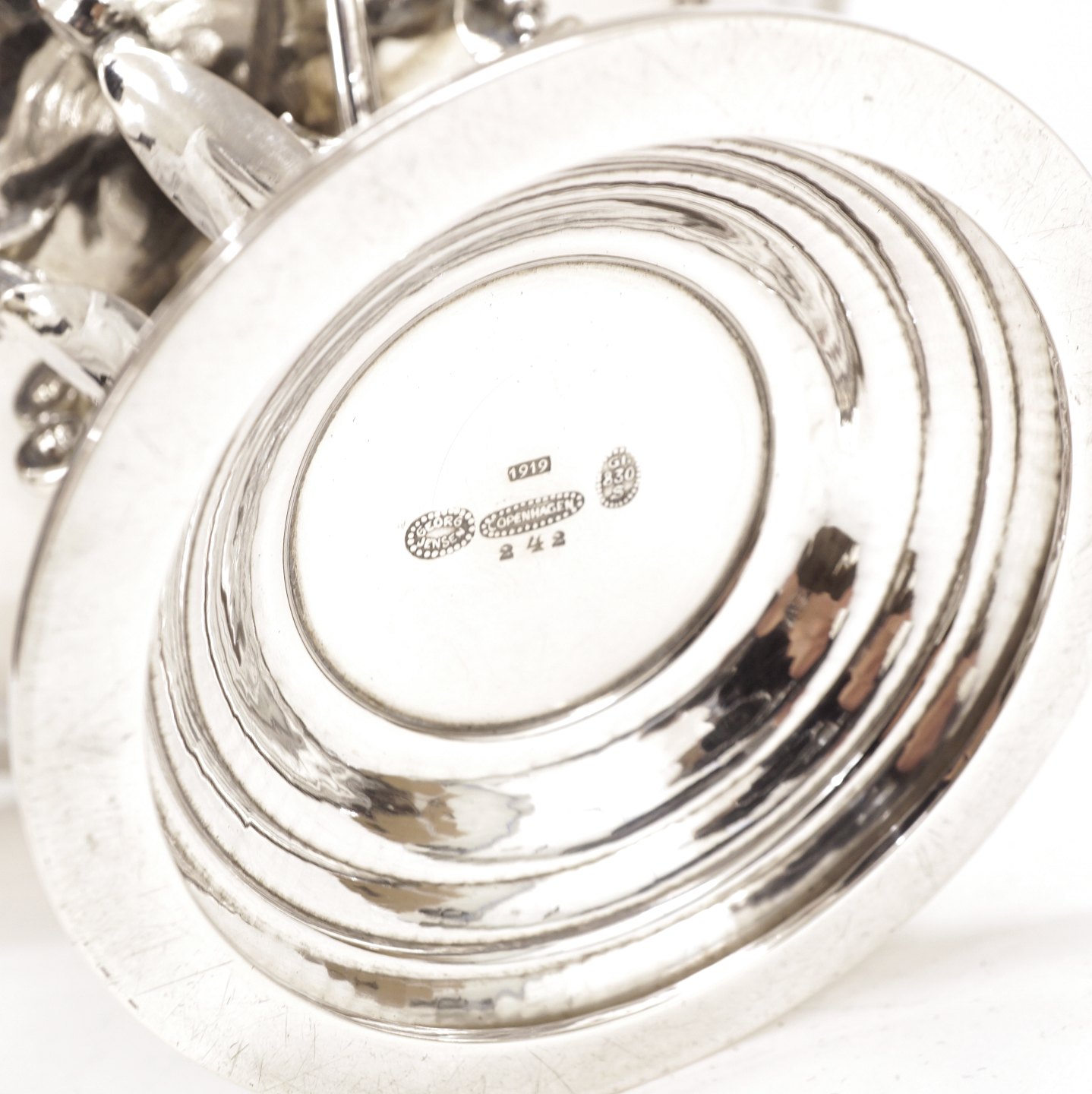Johan Rohde for Georg Jensen: Et par opsatse i sølv. Stemplet og dateret 1919. #242