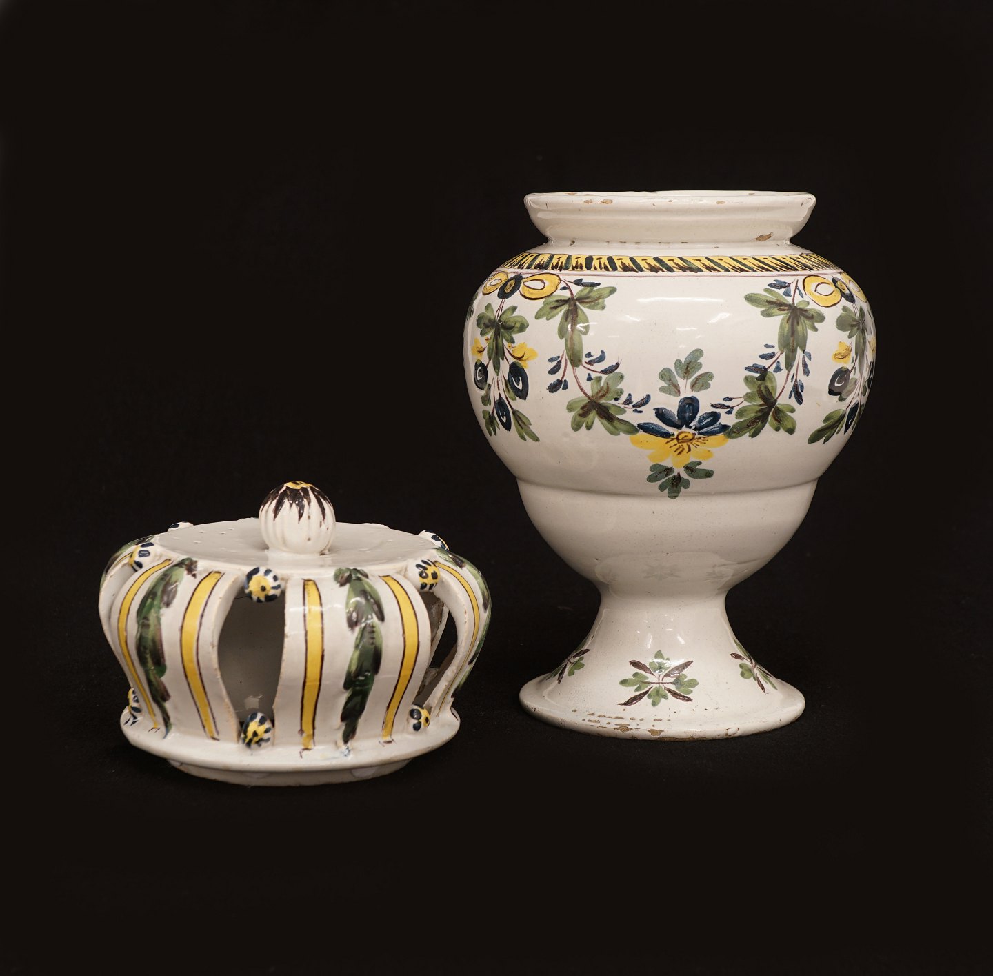 An end 18th century potpourri jar of faience. Kellinghusen, Northgermany, circa 1790. H: 27cm