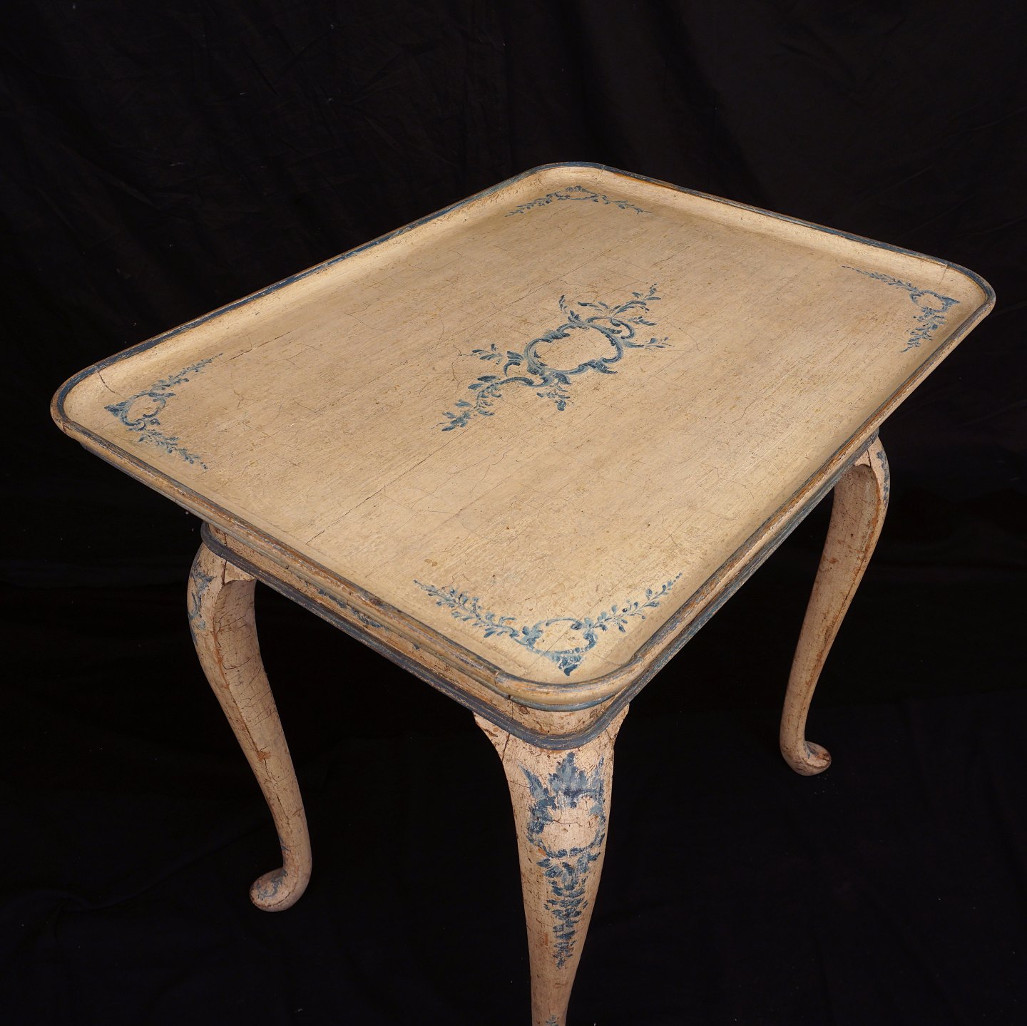 An original decorated Rococo table with blue decorations Denmark circa 1760 H: 79cm. Top: 82x61cm Item number: 763A