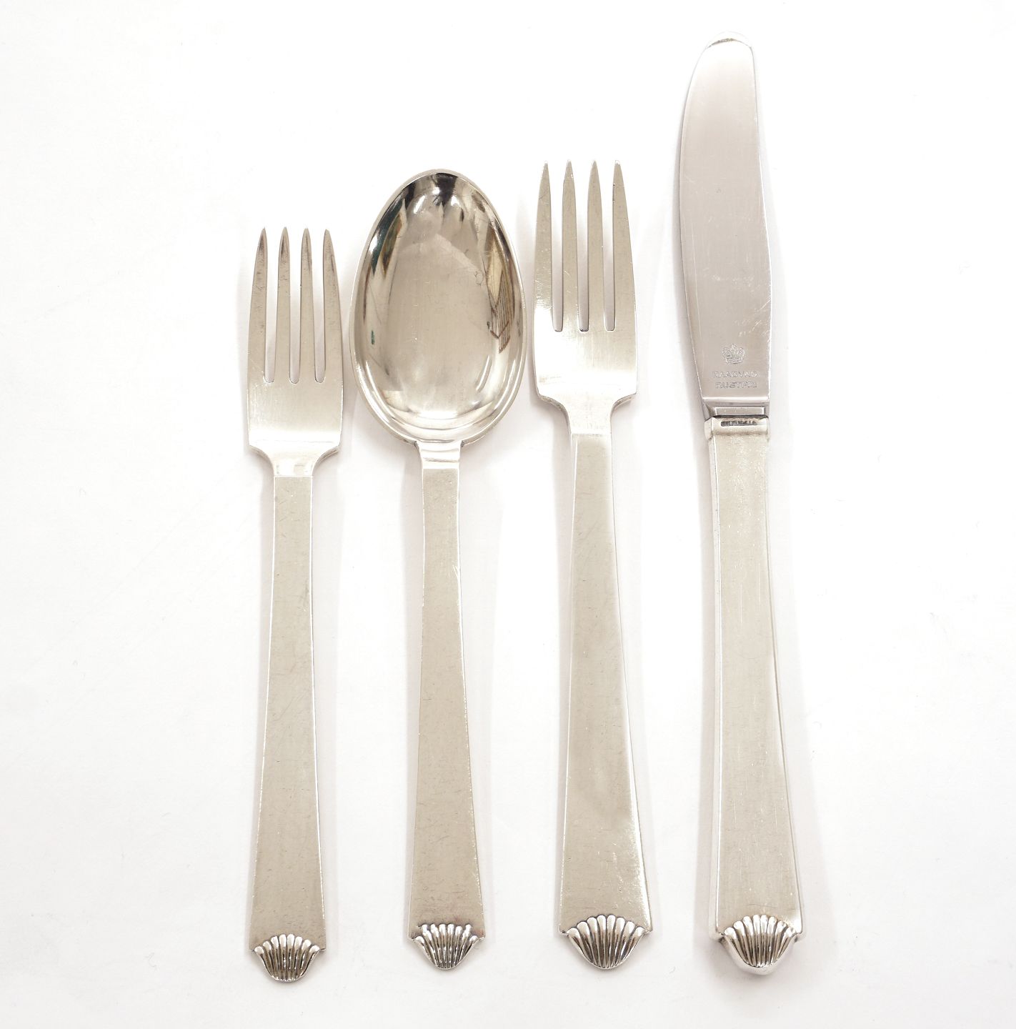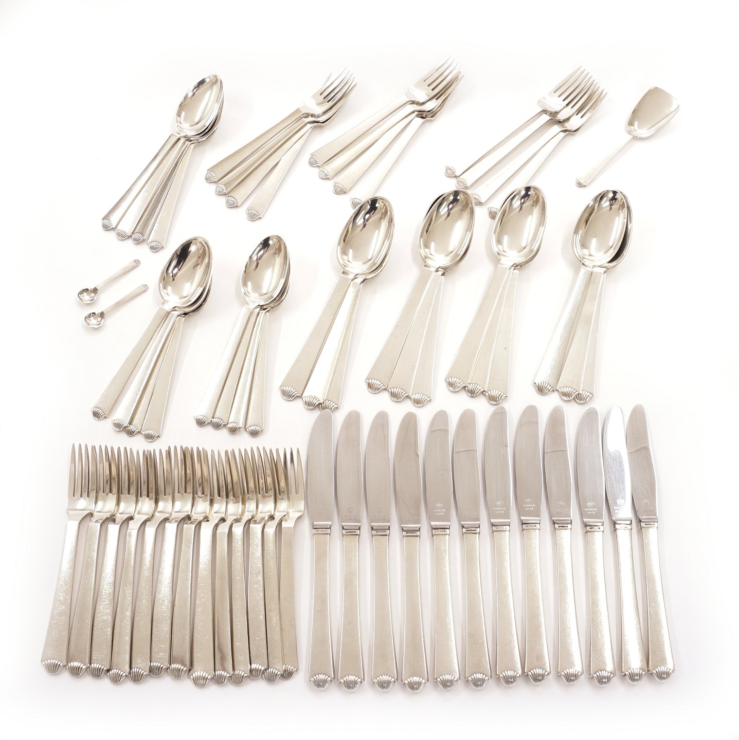 Hans Hansen, Kolding, Denmark. Silver cutlery set "Arvesølv 4". 63 pieces