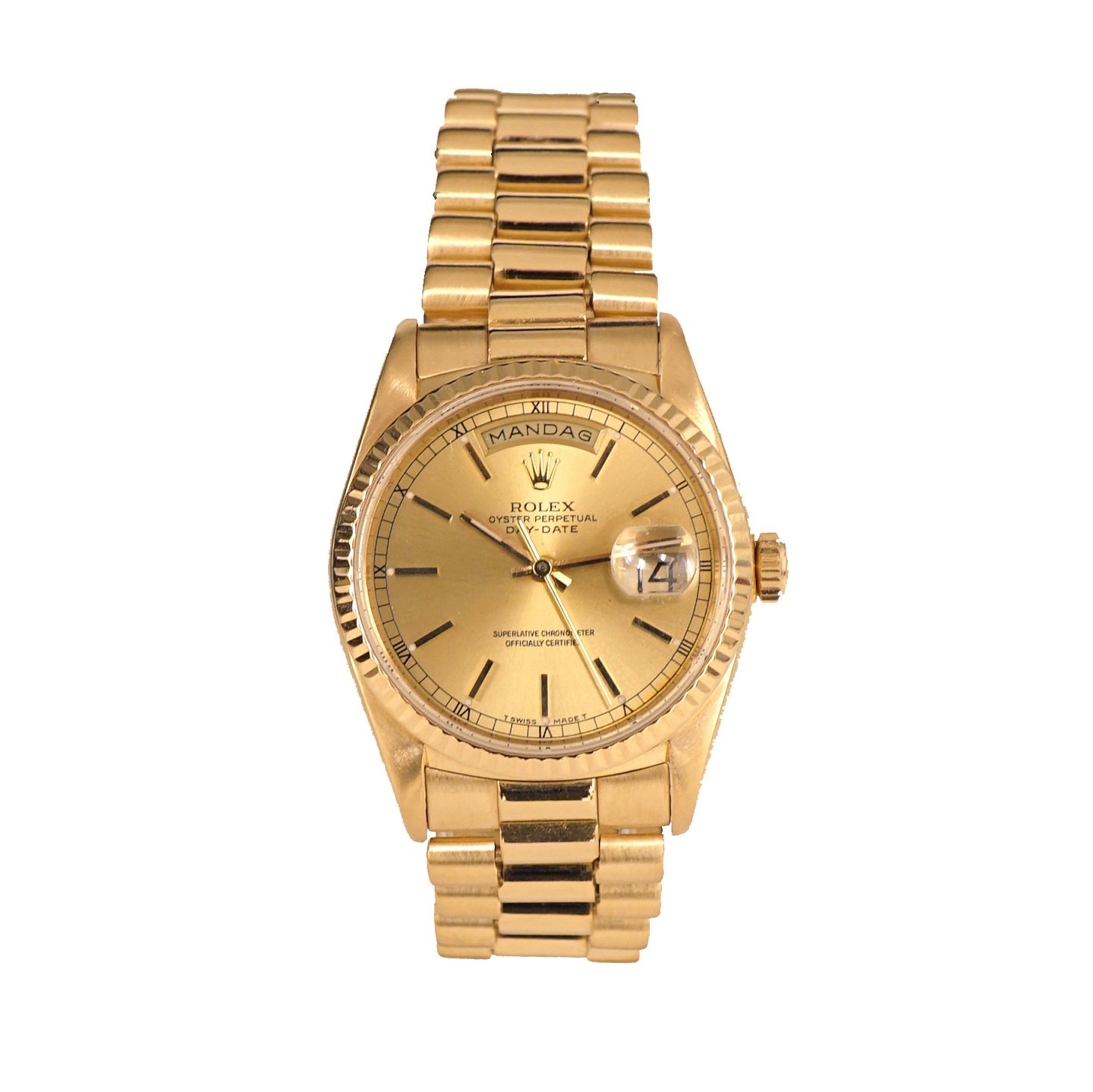 Rolex Day Date i 18kt guld med dansk dagsangivelse. Automatik