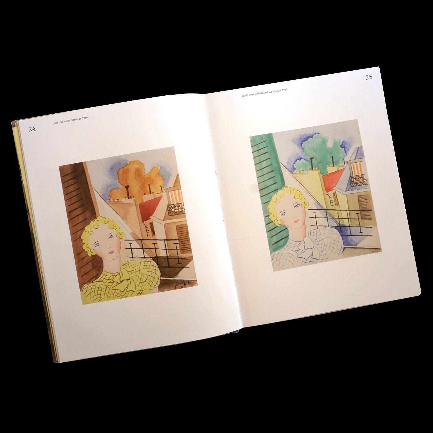 Rita Kernn-Larsen: Zwei Aquarelle. Paris 1934. Lichtmasse: 27x22cm. Mit Rahmen: 48x38cm