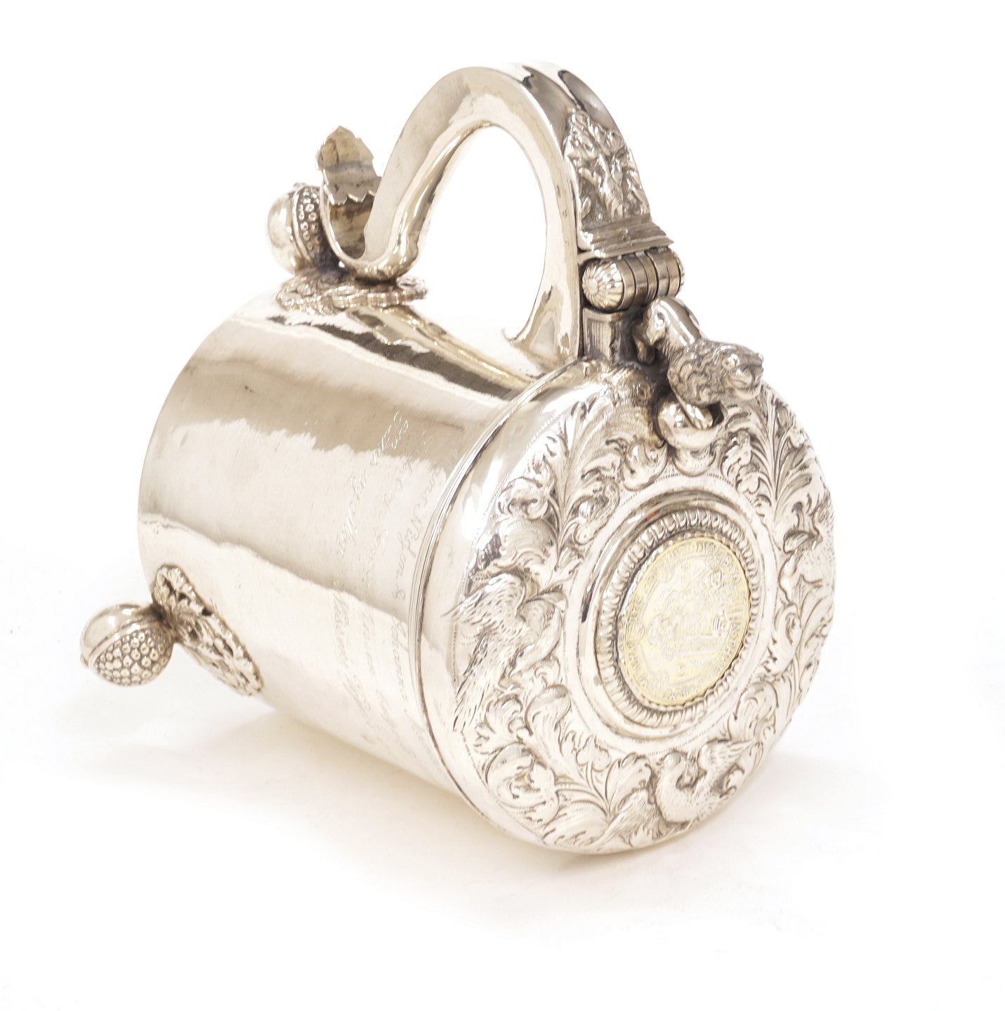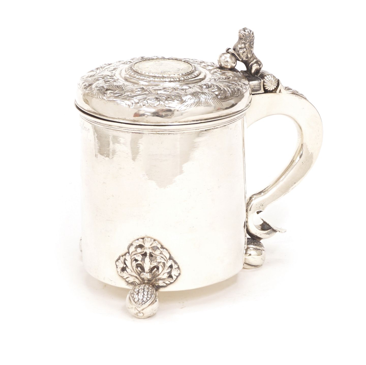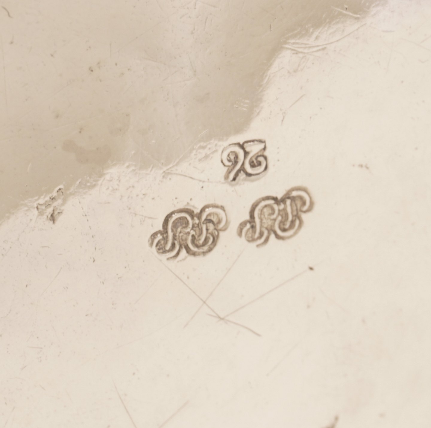 Peter Petersen, Haderslev, 1779-91: Barok lågkrus. Prydet med fødder i form af granatæbler. Låg rigt drevet med fugle og bladværk