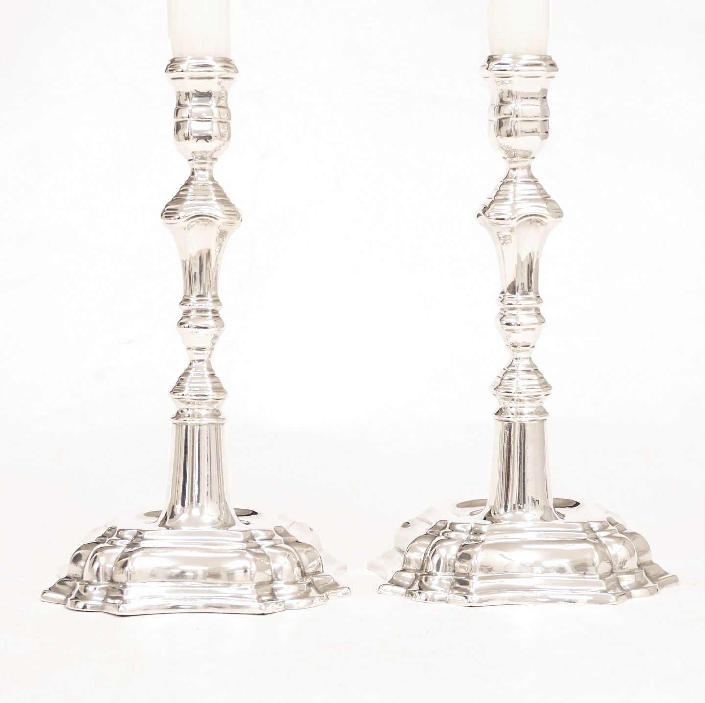 Jens Christensen, Copenhagen, 1734-62: A pair of mid 18th century baroque silver candlesticks. Dated 1740. H: 19,2cm. W: 593gr