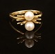 14kt guldring monteret med to perler