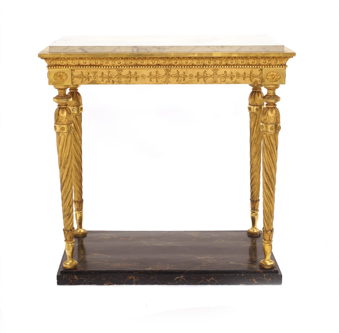 A gilt and signed late 18th century Gustavian console table. Sweden circa 1780. H: 85cm. Top: 85x45cm
