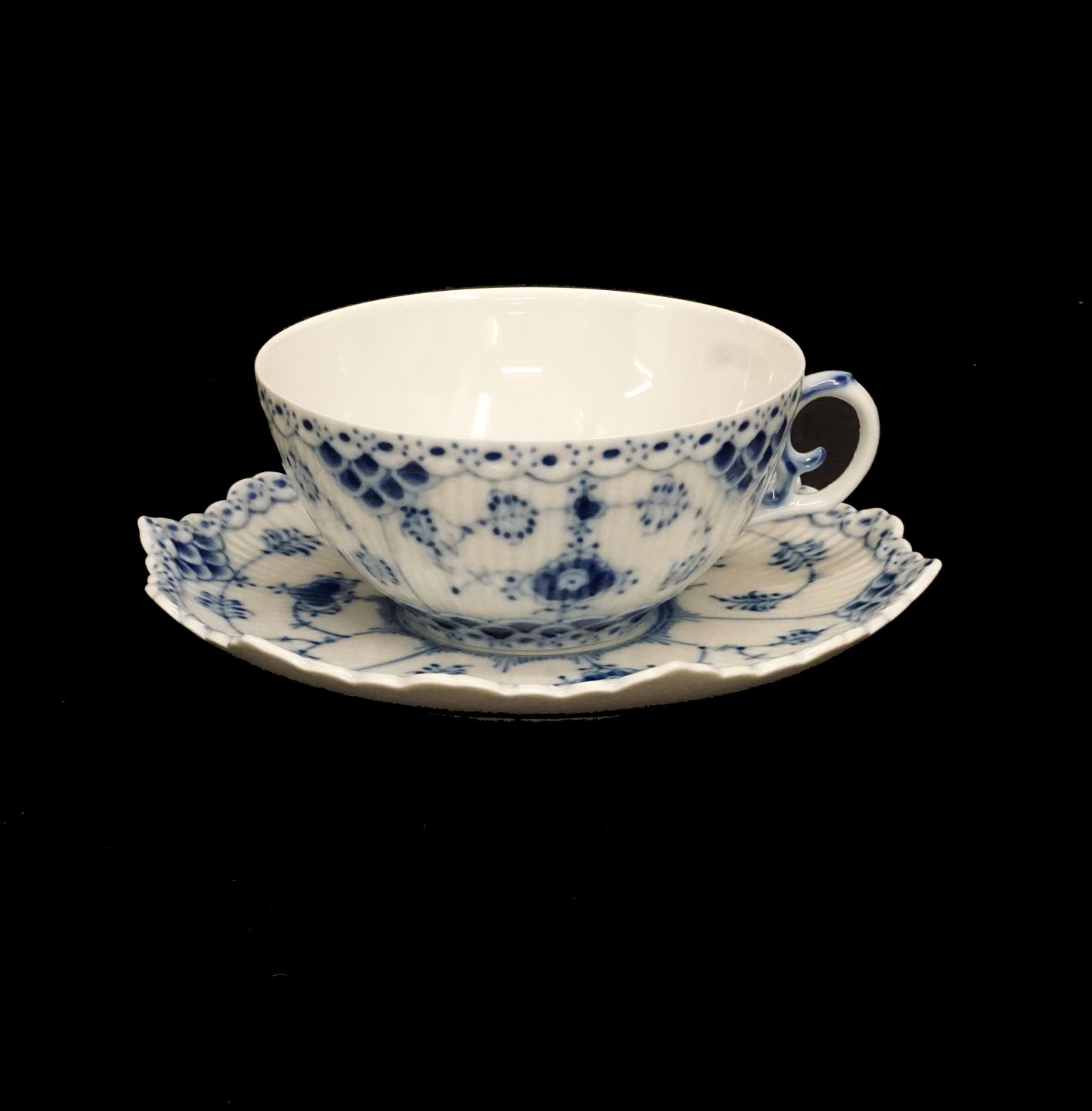 Royal Copenhagen blue fluted full lace tea cups. #1130. D cup: 10cm