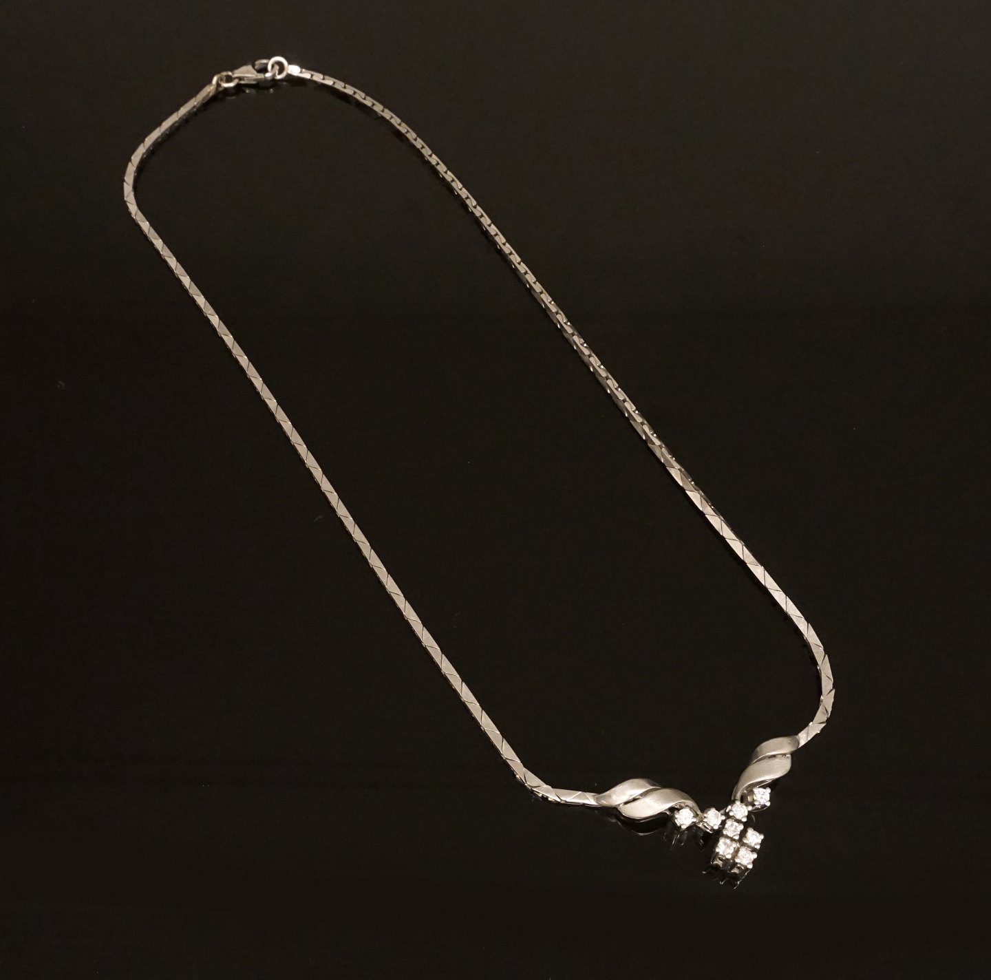 A 14kt whitegold necklace with 8 diamonds L: 42cm Item number: 33692B