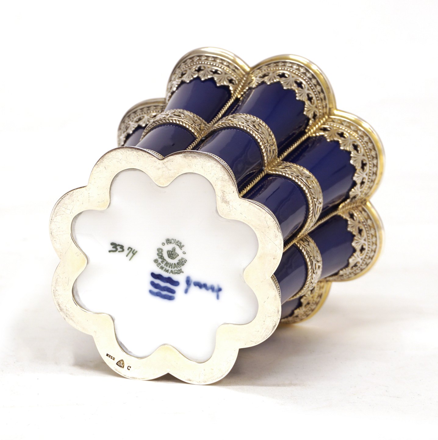 Stort Royal Copenhagen Margrethebæger i porcelæn med sølvmontering fra A. Michelsen