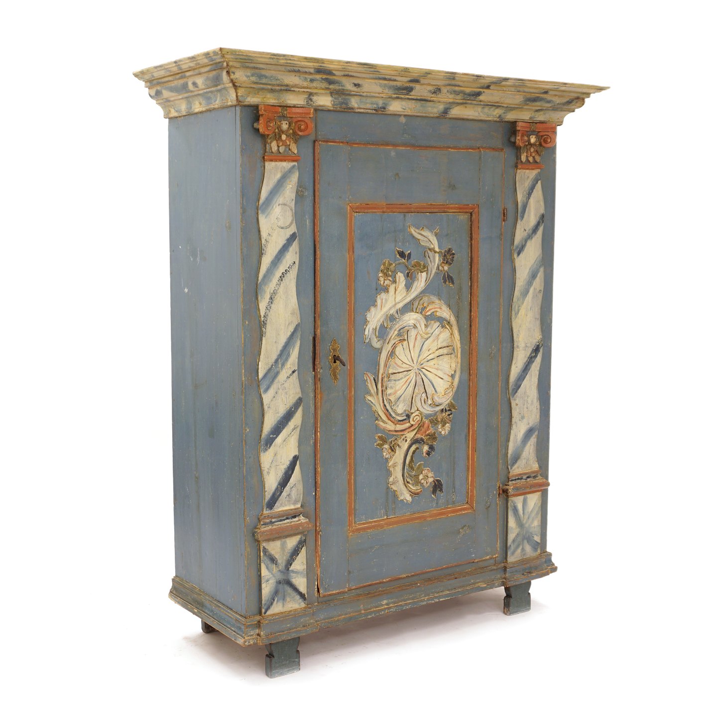 Mid 18th century carved Swedish Baroque cabinet. Circa 1750. H: 172cm. W: 138cm. D: 57cm