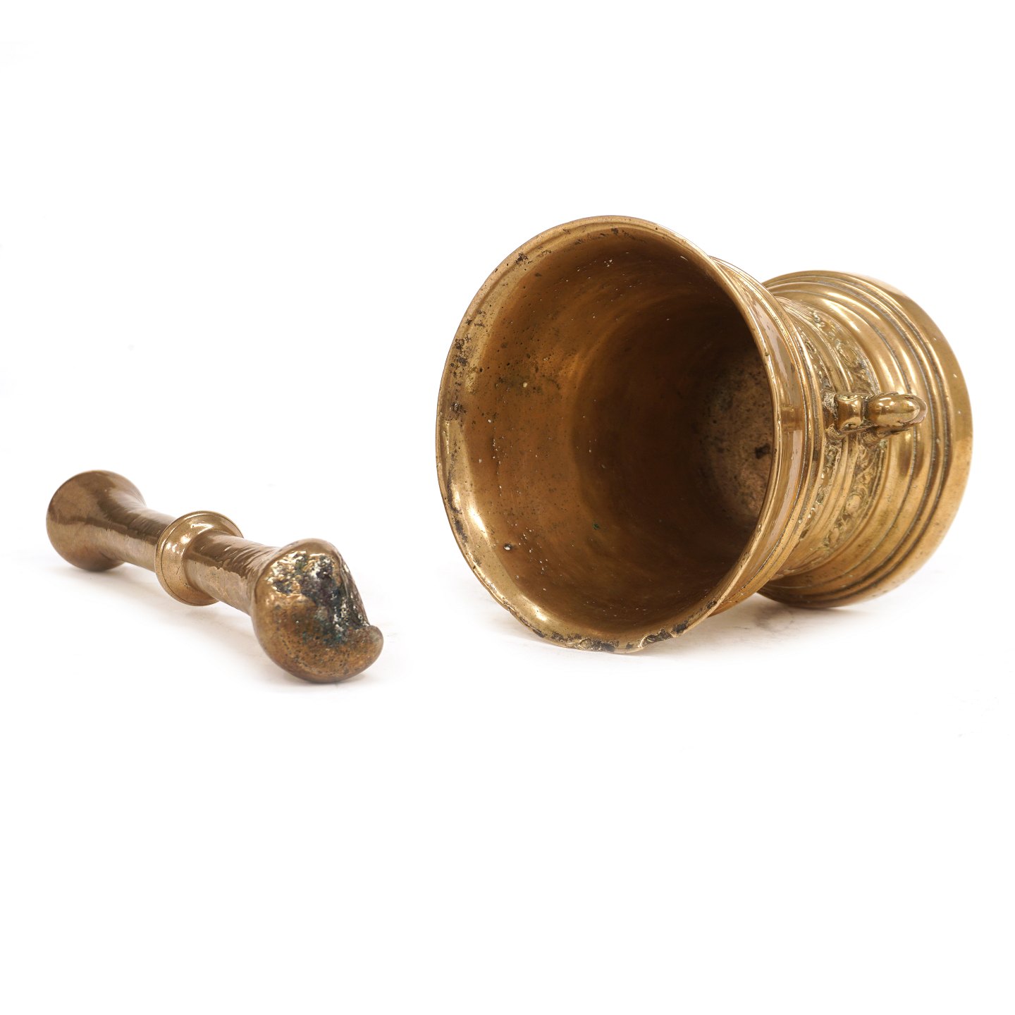 An early Dutch brass mortar decorated with birds and dolphins Holland circa 1600 H: 12,8cm Item number: 33989