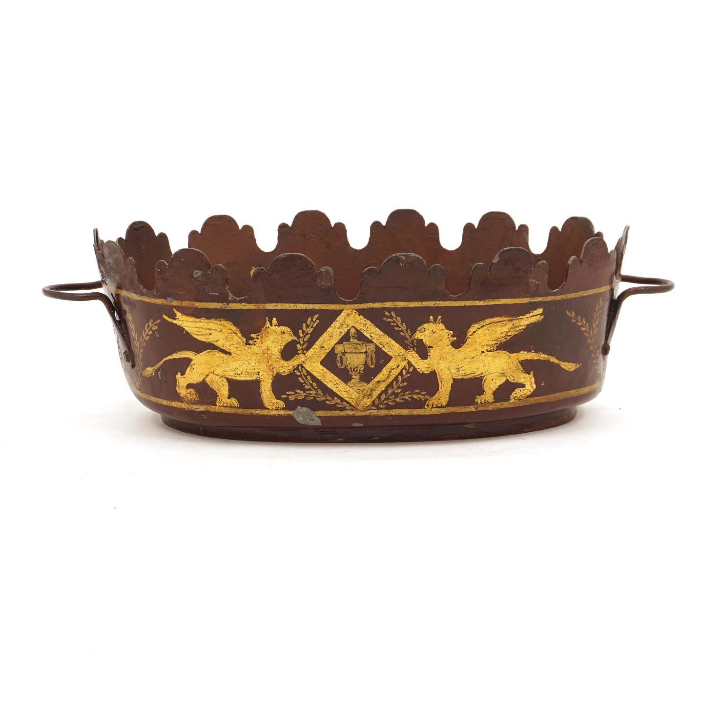 Red decorated and gilt glass cooler. Circa 1840. H: 10cm. L: 34cm