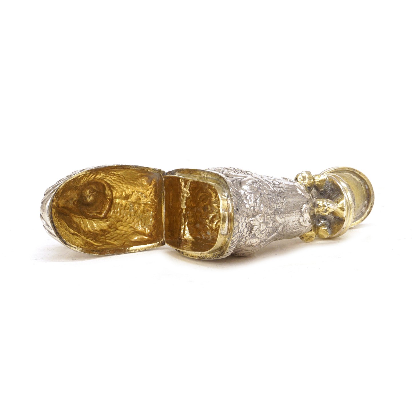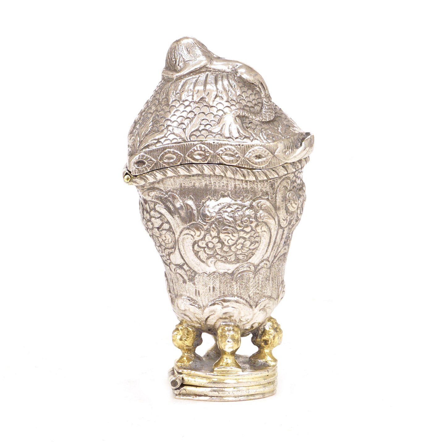 A mid 18th century partly gilt silver vinaigrette by Frederik Mincke, Arendal, Norway, 1745-75. H: 7cm. W: 46gr