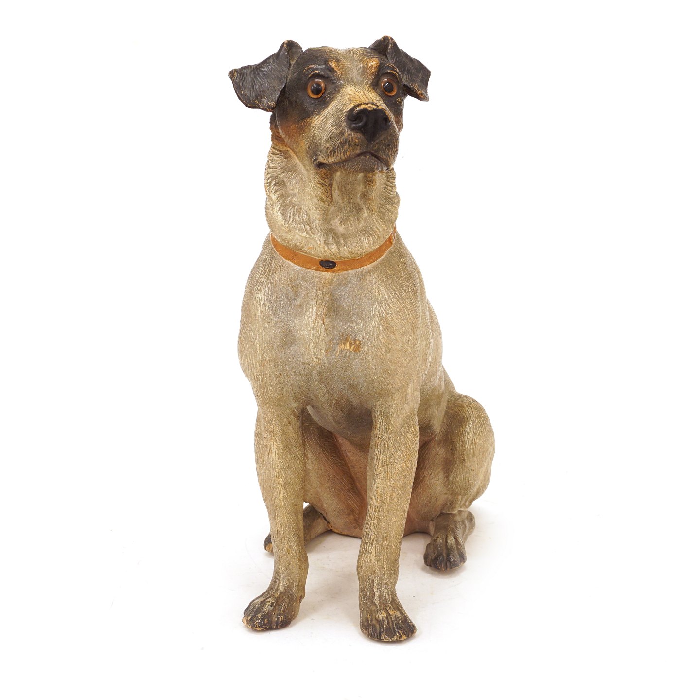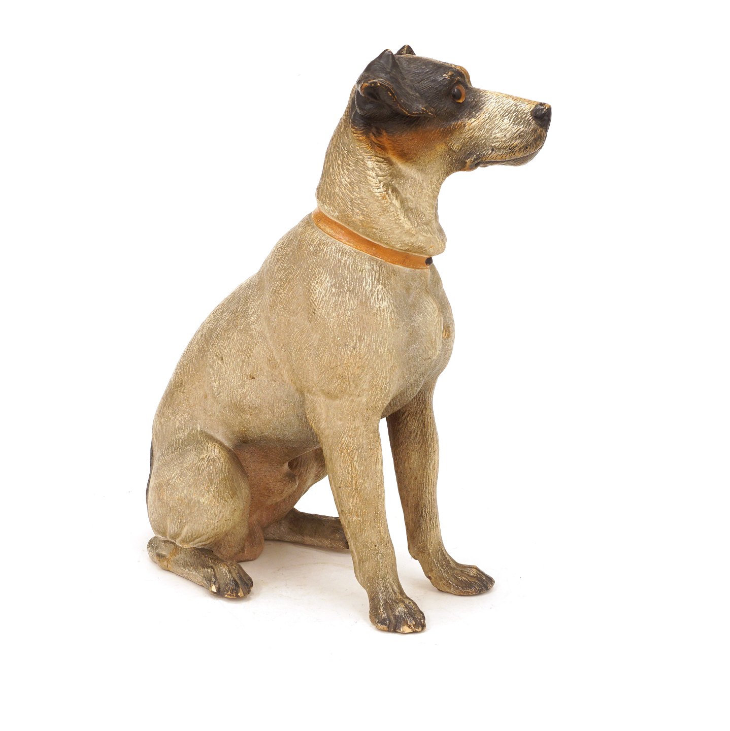 Grosse Figur in Form von einem Hund. Österreich um 1880. H: 37cm