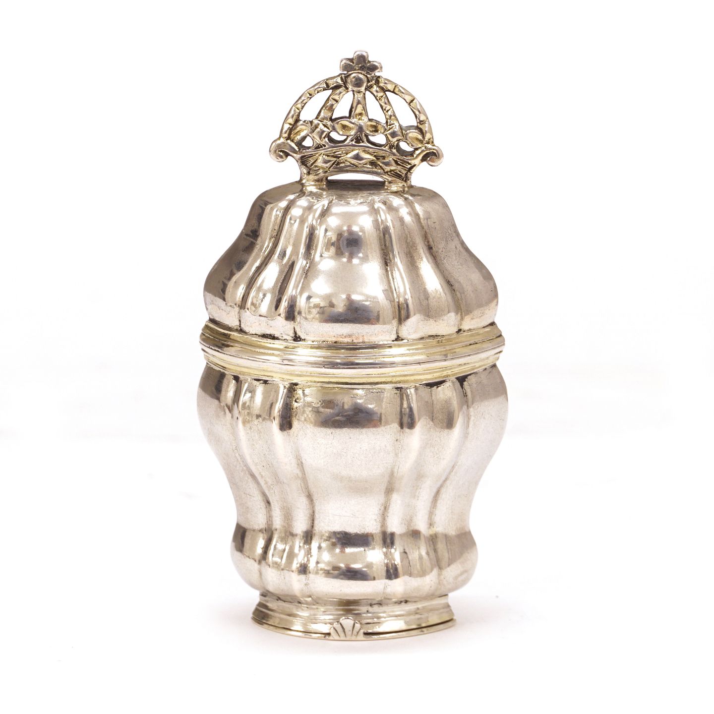 Partly gilt silver vianigrette by Martin Hinrich Petersen, Hadersleben, 1792-1809. H: 8cm. W: 36,5gr