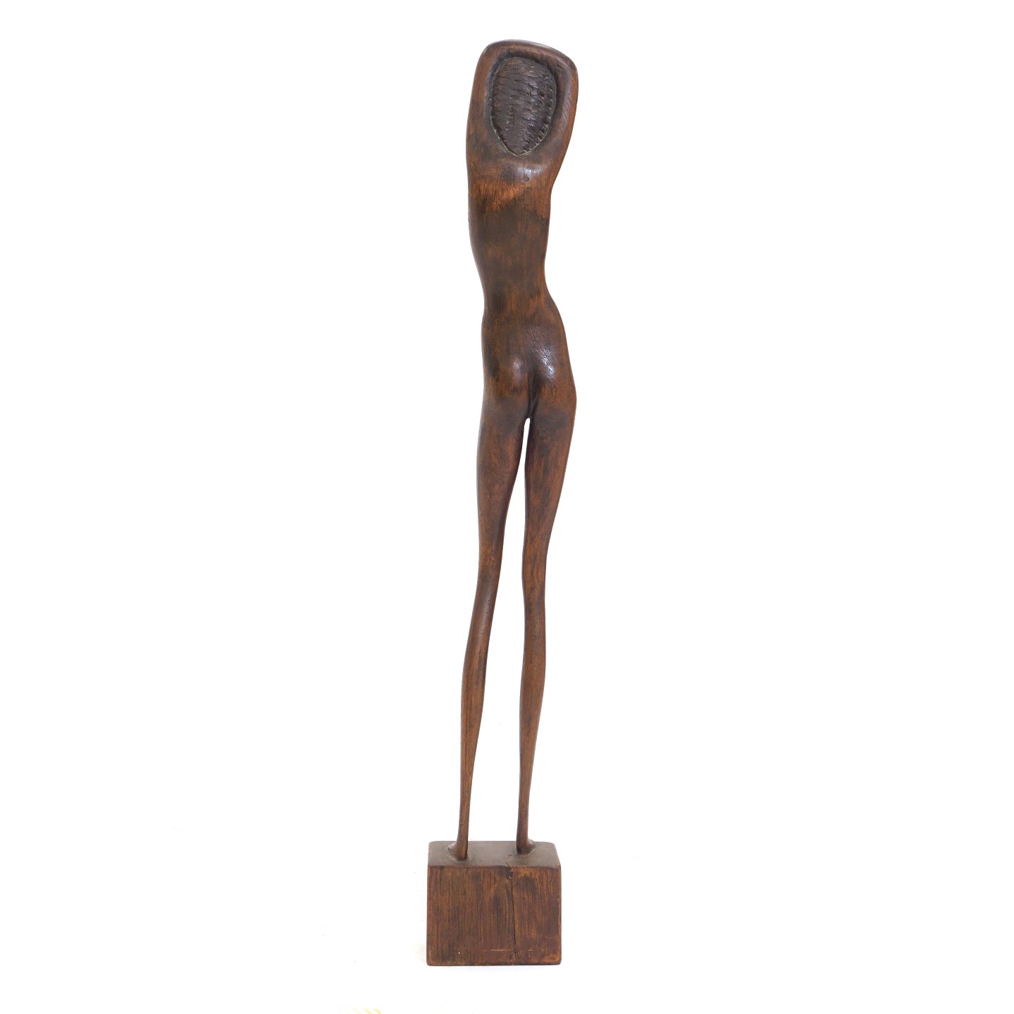 Large wood cut figure by Otto Pedersen, 1902-95, Denmark. Signed. H: 80cm