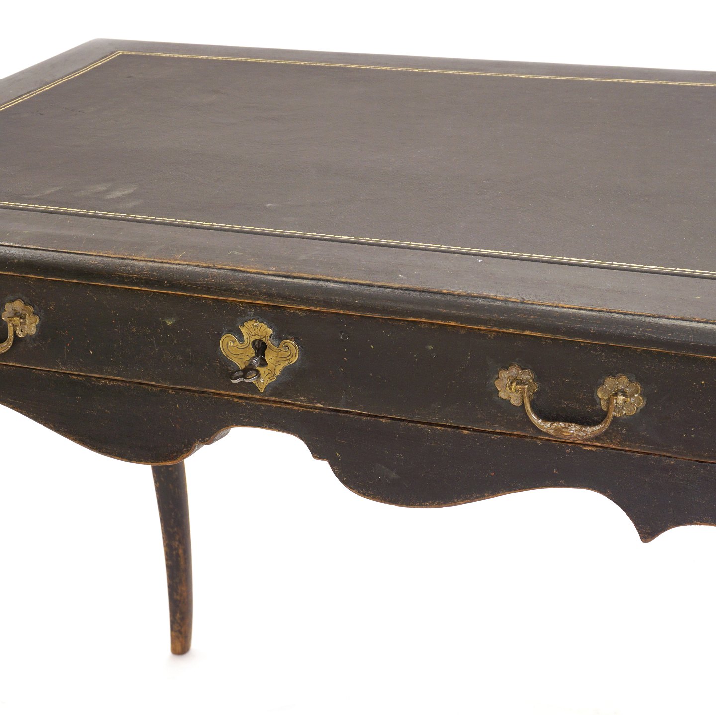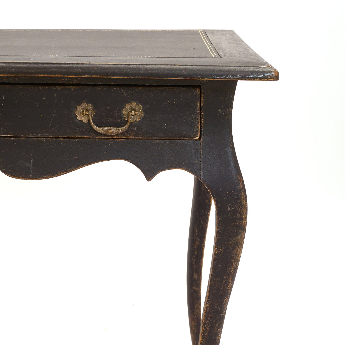 Black Rococo writing table with inset leather top Sweden circa 1760 H: 74cm. Top: 85x60cm Item number: 34339