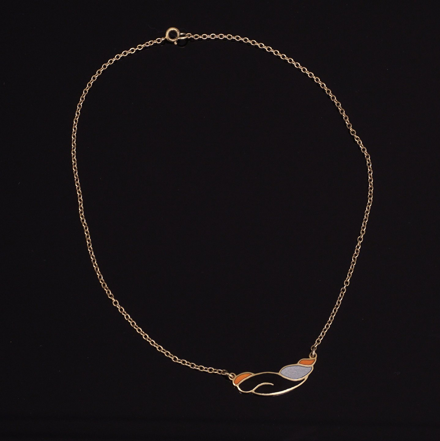 Set of gilt sterlingsilver necklace and ring with enamel