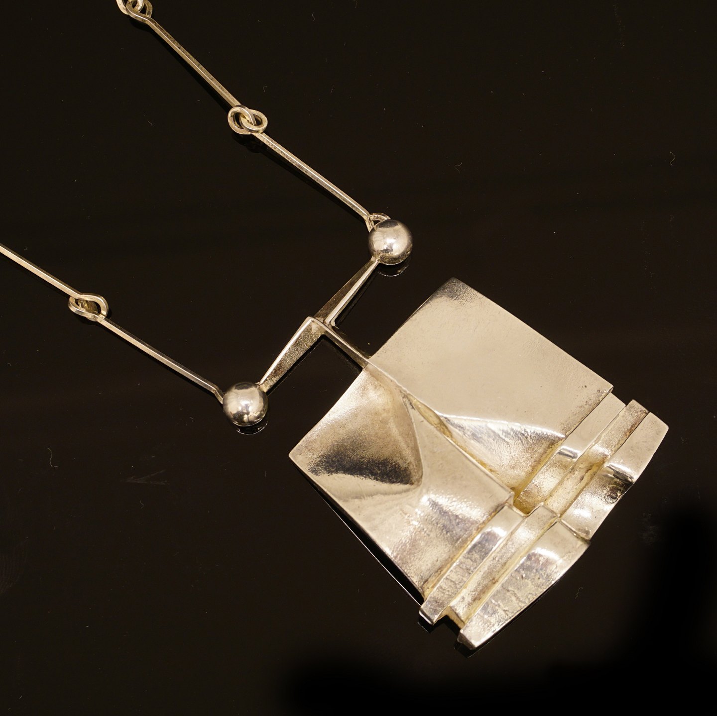 Sterlingsilver Lapponia necklace dated 1970. Pendant: 6,3x5cm. Necklace L: 75cm