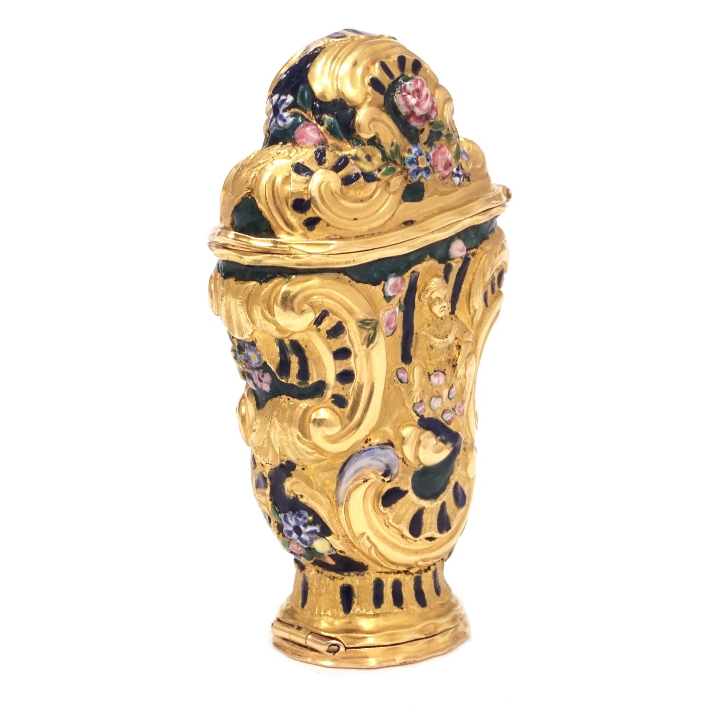 Very rare 18kt gold Rococo vinaigrette circa 1760. H: 5,7cm. W: 22,6gr