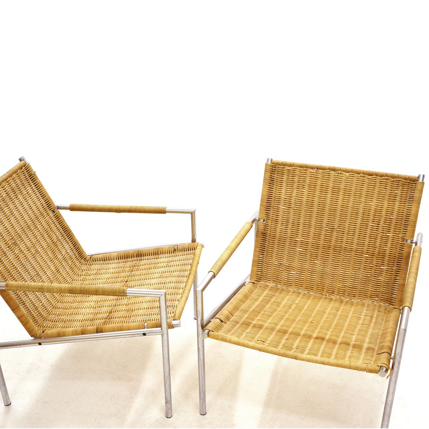 Pair of Martin Visser, 1922-2009, SZ01 lounge chairs, steel and wicker