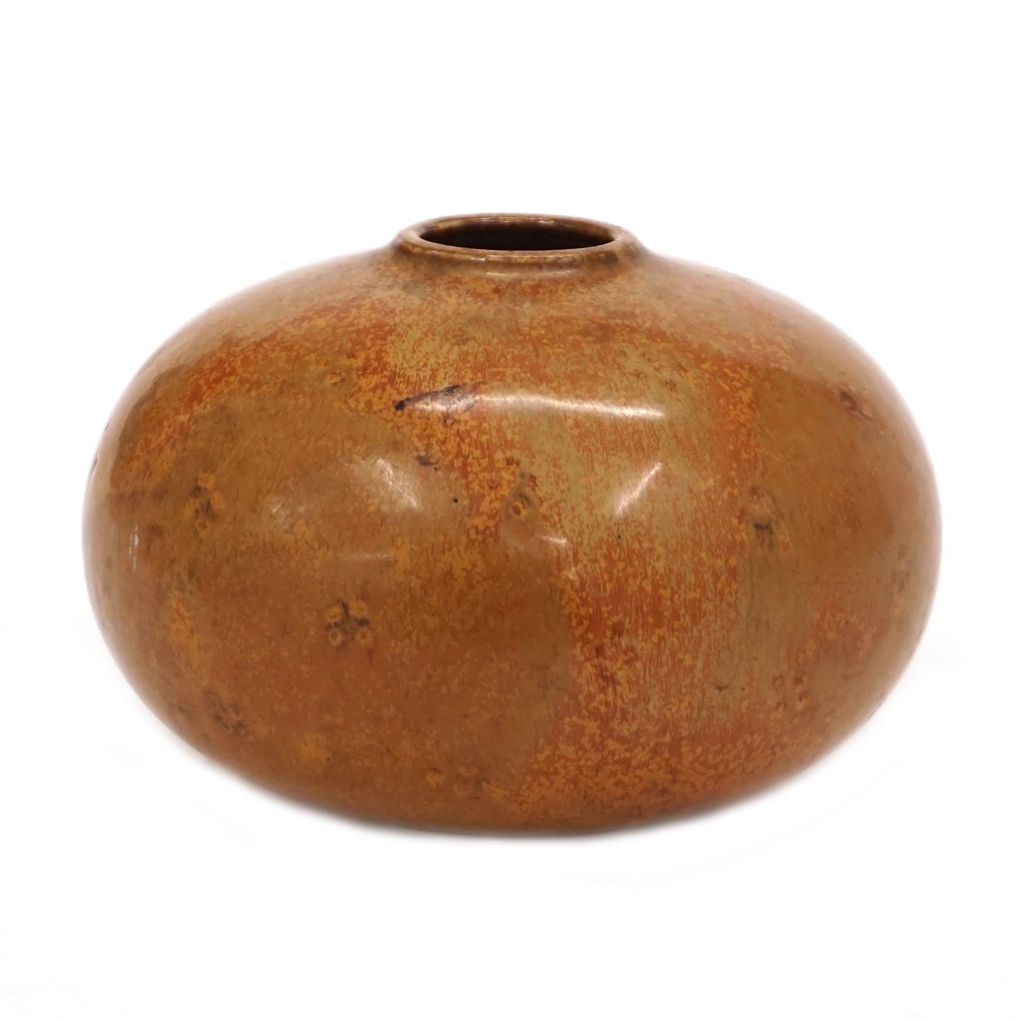Danish stoneware vase by Saxbo Brown/red glaze Signed Saxbo H: 9,5cm. D: 13cm Item number: 35409