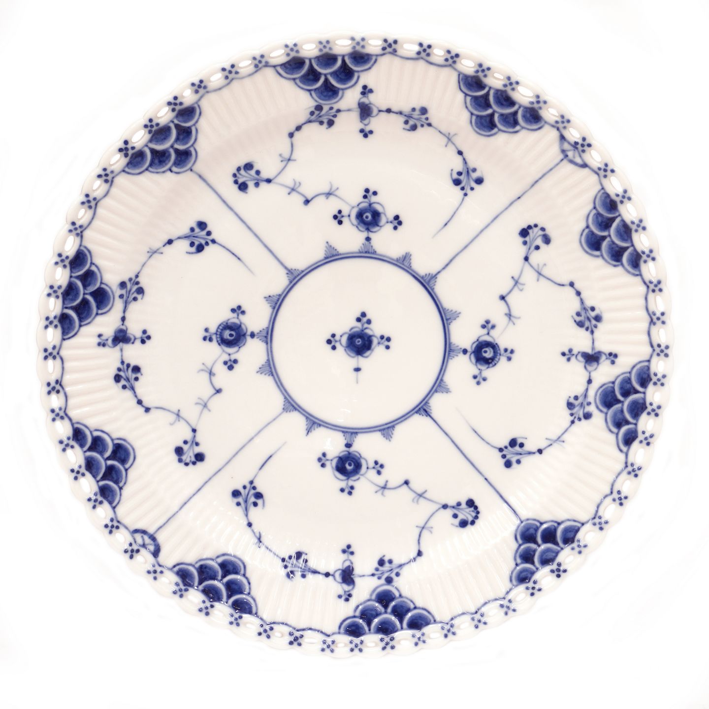 Set of eight 19th century blue fluted full lace plates. 1870-1890. D: 24,5cm