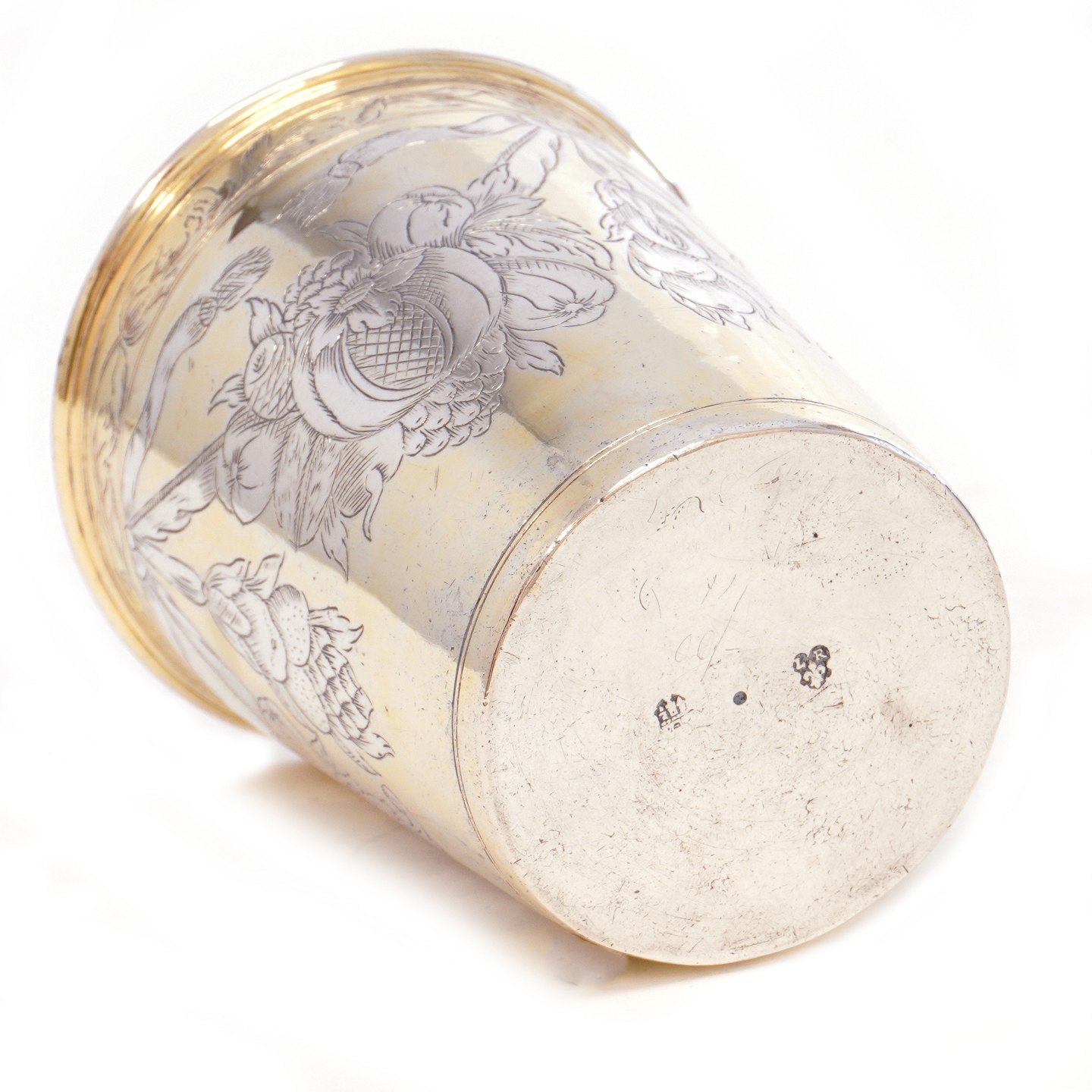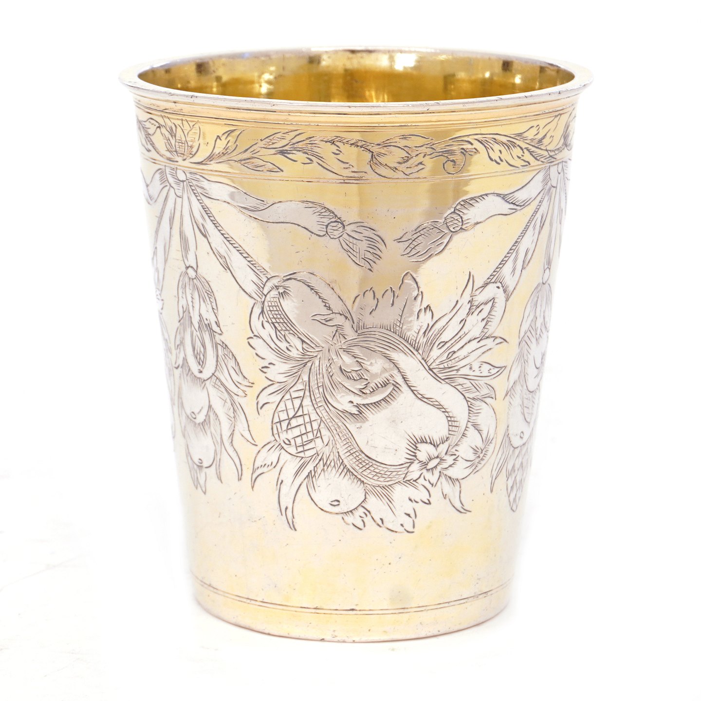 Important gilt renaissance silver cup by Leonhardt (Leuert) Roethaer, 1671-98, Hamburg. H: 9,2cm. W: 143gr