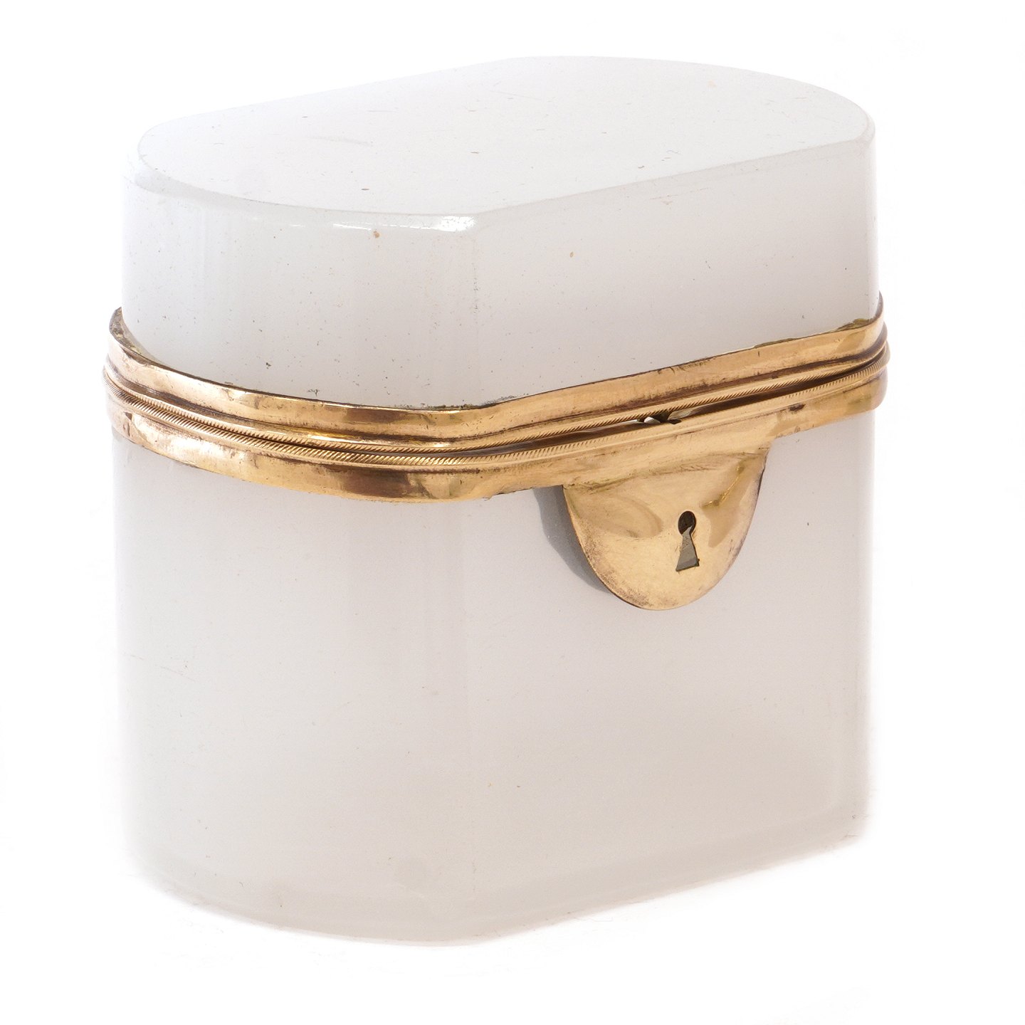 Mid 19th century French sugar box brass mounted. H: 9cm. W: 10,5cm