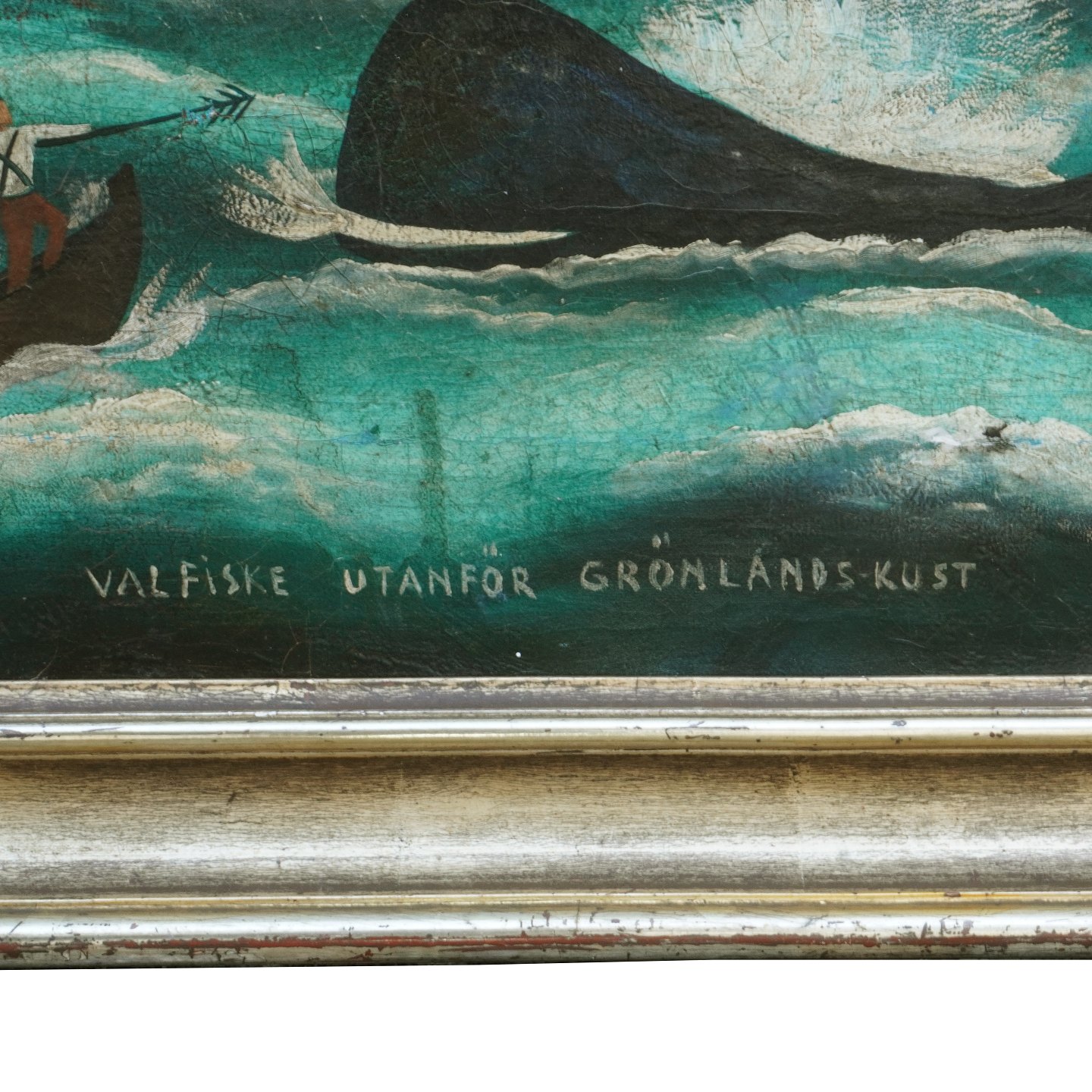 Seascape with whalers at Greenlands coast. Oil on canvas