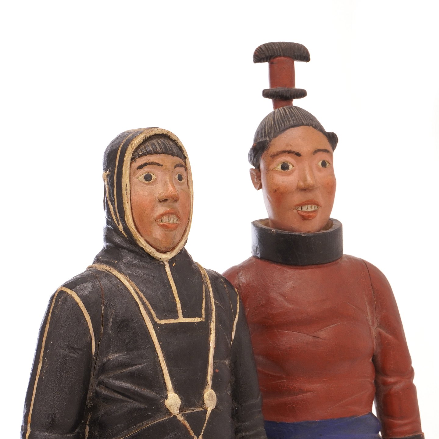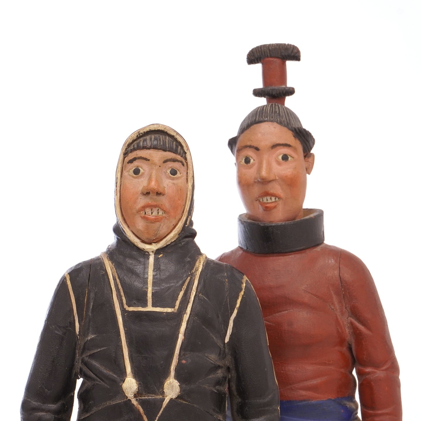Johannes Kreutzmann, 1862-1940, figurer af træ forestillende grønlandsk mand og kvinde