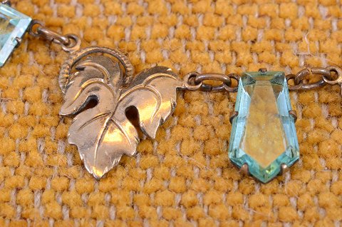 Necklaces gold plated adorned with leaves and faux aquamarine stone. Size.: 48 cm Art.No. 22