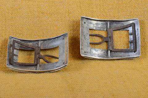 Skospænder sølv punslet mønster, monogram SCD, dateret 1845 og med sølvknopper i hvert hjørne. Dobbelt stemplet "WI" spænddelen er af jern. Str. 8,5 * 5,5 cm Art No.46
