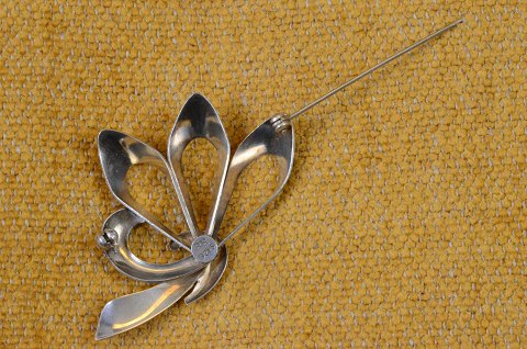 Brooch of silver, vintage design of the 3-dimensional leaf pattern. Stamped "BH" 925S. Str .: 6.8 * 3.5 cm. Art No.74