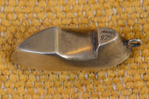 Vedhæng af snabelsko i mini størrelse af sølv, forgyldt og dekoreret med emaljeret i tyrkis, hvid og sort. Stemplet 925 S. Str.: 2,5 cm * 1 cm. Art No. 88