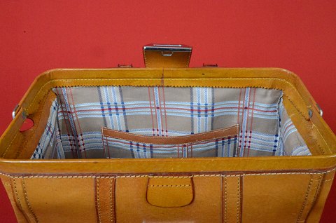 Rejsetaske af skind og stof, h: 24 cm, l: 37 cm