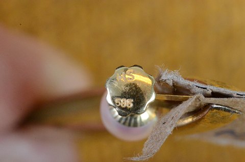 Øreskruer i guld med kulturperler. Stemplet 585 HS (Herman Siersbøl). Str.: 0,6 cm. Art No. 110